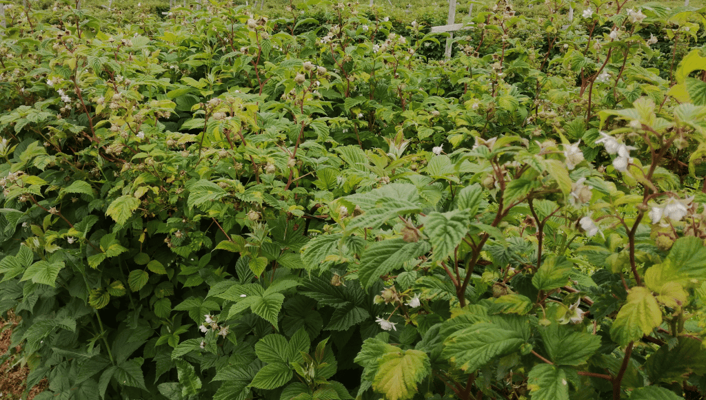 Herneiden lisäksi kasvatamme avomaalla puutarhamarjoja. Päämarjamme ovat vadelma ja karviainen.