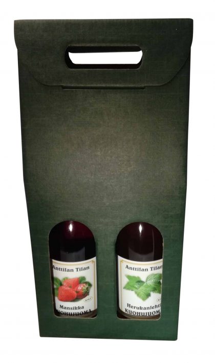 Pahvinen lahjapakkaus sisältää kaksi alkoholitonta kuohujuomaa valintasi mukaan.